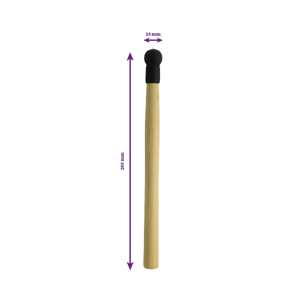 Nuestro kit incluye 4 flumies redondos de silicona negra de 25 mm, 35 mm, 45 mm y 55 mm, diseñados para extraer tonos armónicos únicos mediante la fricción con tu gong.