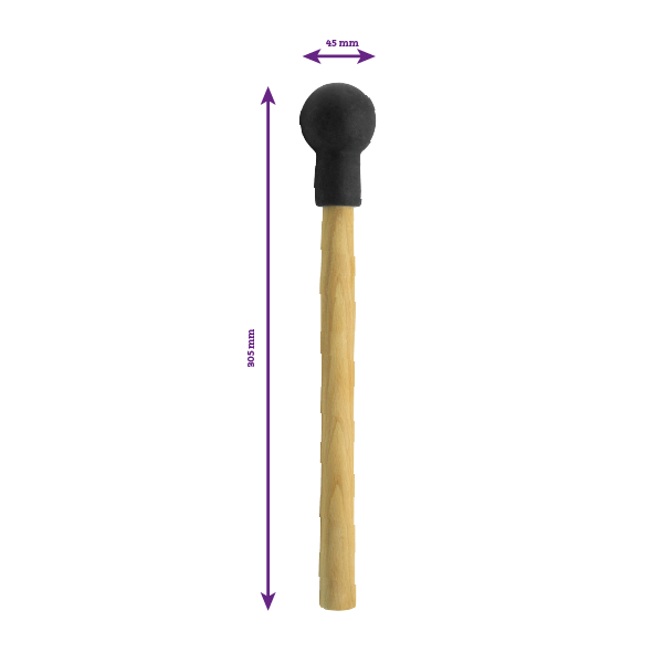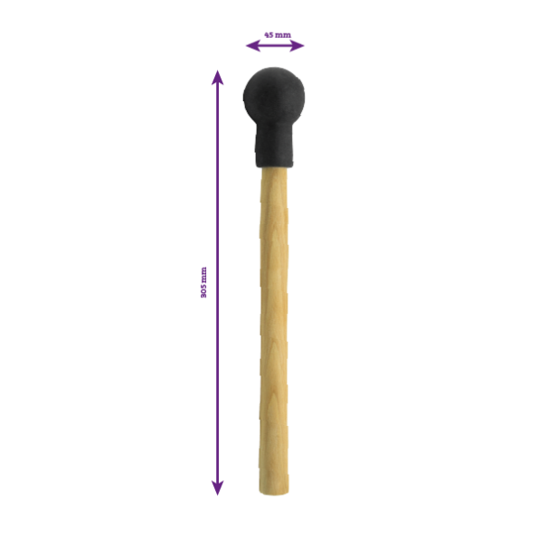 Nuestro kit incluye 4 flumies redondos de silicona negra de 25 mm, 35 mm, 45 mm y 55 mm, diseñados para extraer tonos armónicos únicos mediante la fricción con tu gong.