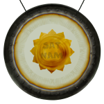 Forjado con detalle, su superficie refleja el trabajo artesanal y una intención clara: ofrecer un portal sonoro hacia estados superiores de conciencia. El símbolo Sat Nam, cuyo significado es “la verdad es mi identidad”, está grabado en el centro como un recordatorio del alma despierta. Cada vez que el gong vibra, ese mantra se activa no solo en el aire, sino también en el corazón de quien escucha.