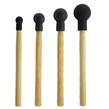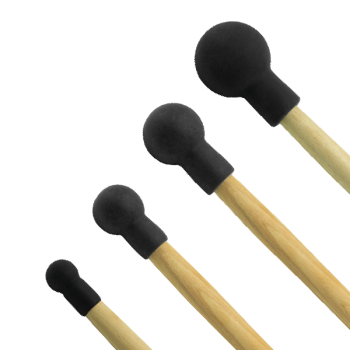 Nuestro kit incluye 4 flumies redondos de silicona negra de 25 mm, 35 mm, 45 mm y 55 mm, diseñados para extraer tonos armónicos únicos mediante la fricción con tu gong.