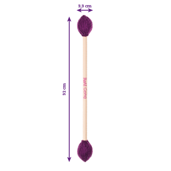 Además, la maza doble núcleo duro es ligera y ergonómica. Su diseño facilita un agarre cómodo que reduce la fatiga en las manos. Esto es especialmente útil durante sesiones prolongadas de toque, donde la comodidad y la eficiencia son fundamentales. La cabeza de la maza, con su diámetro de 3,3 cm, está optimizada para producir un ataque claro, controlado y enfocado. Esto ayuda a realzar los armónicos del gong y aporta un toque firme, sin perder la sutileza en los sonidos más suaves.